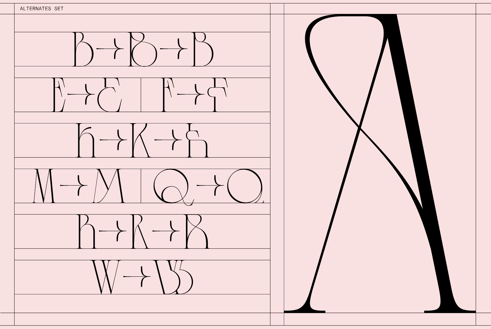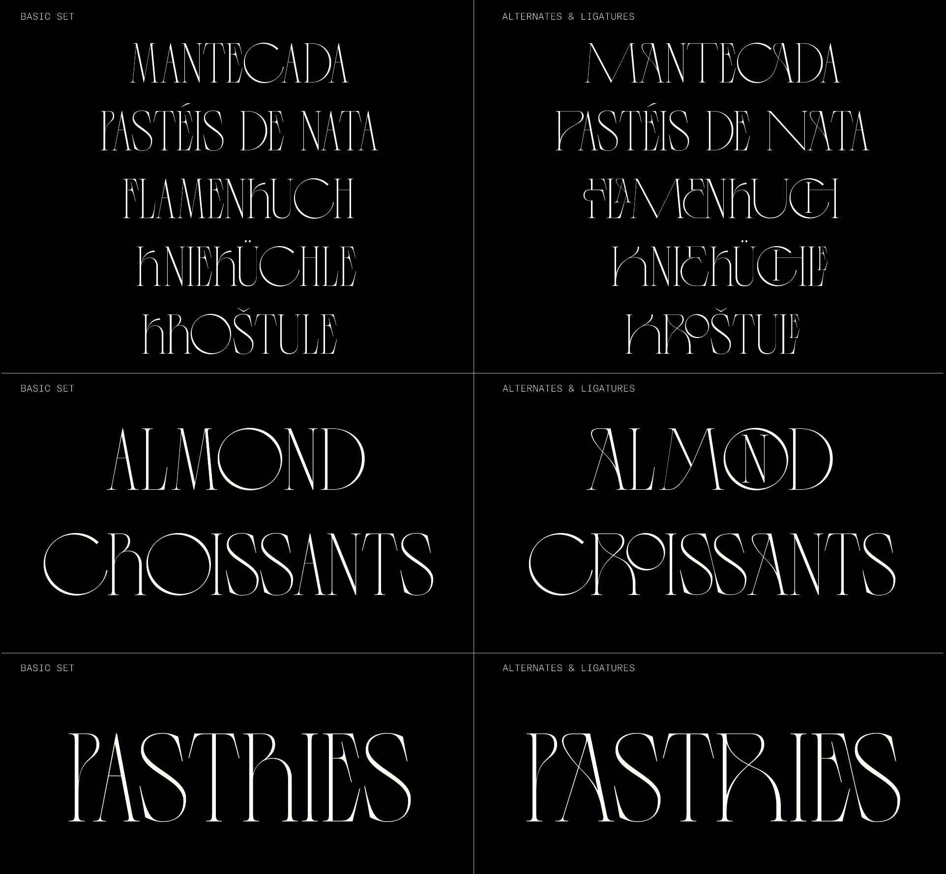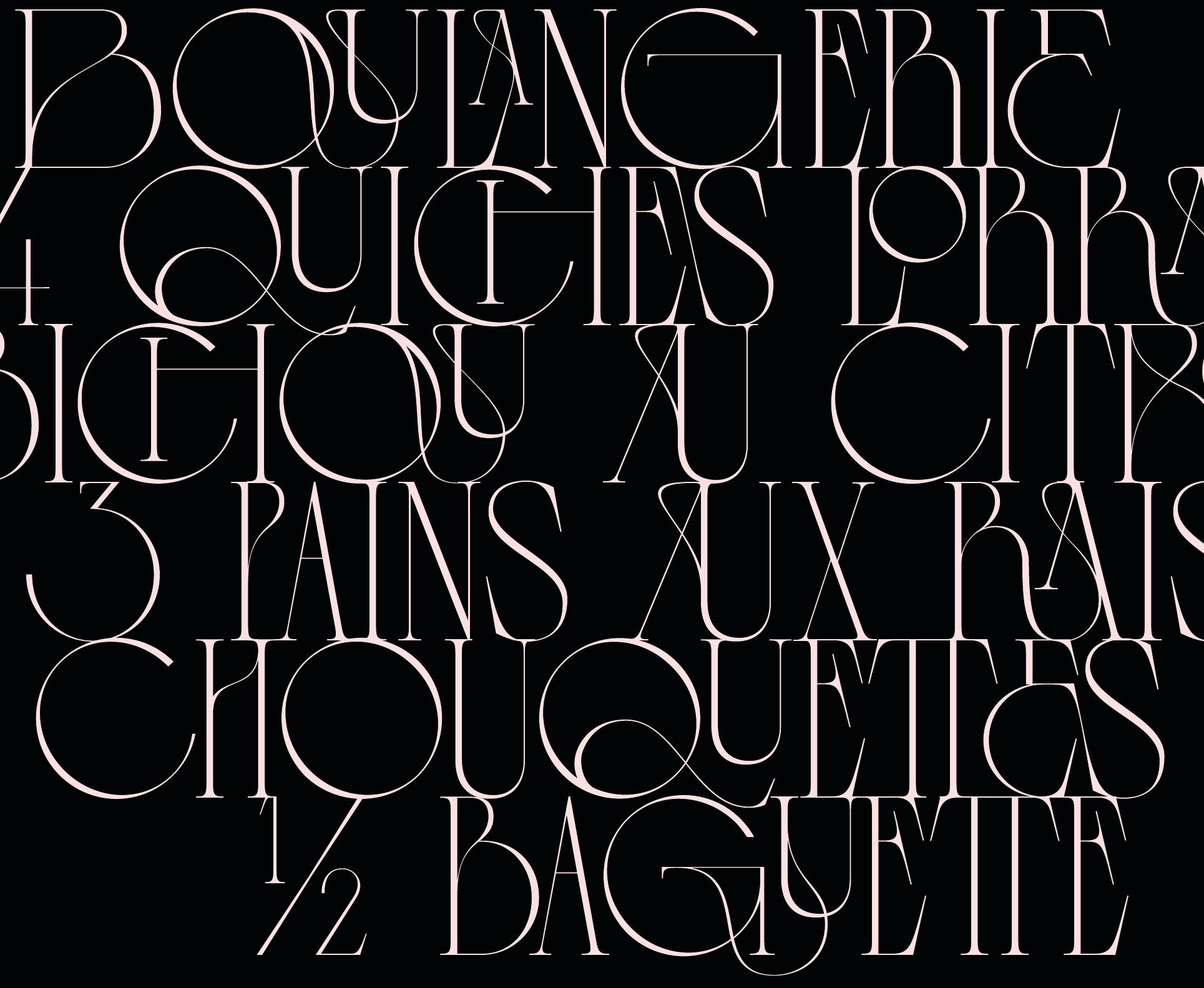 Bakerie is a display typeface, designed with letterforms of contrasting widths. Fluid yet sharp, this typeface is inspired by the elegance of the art and type forms of the late 19th century.