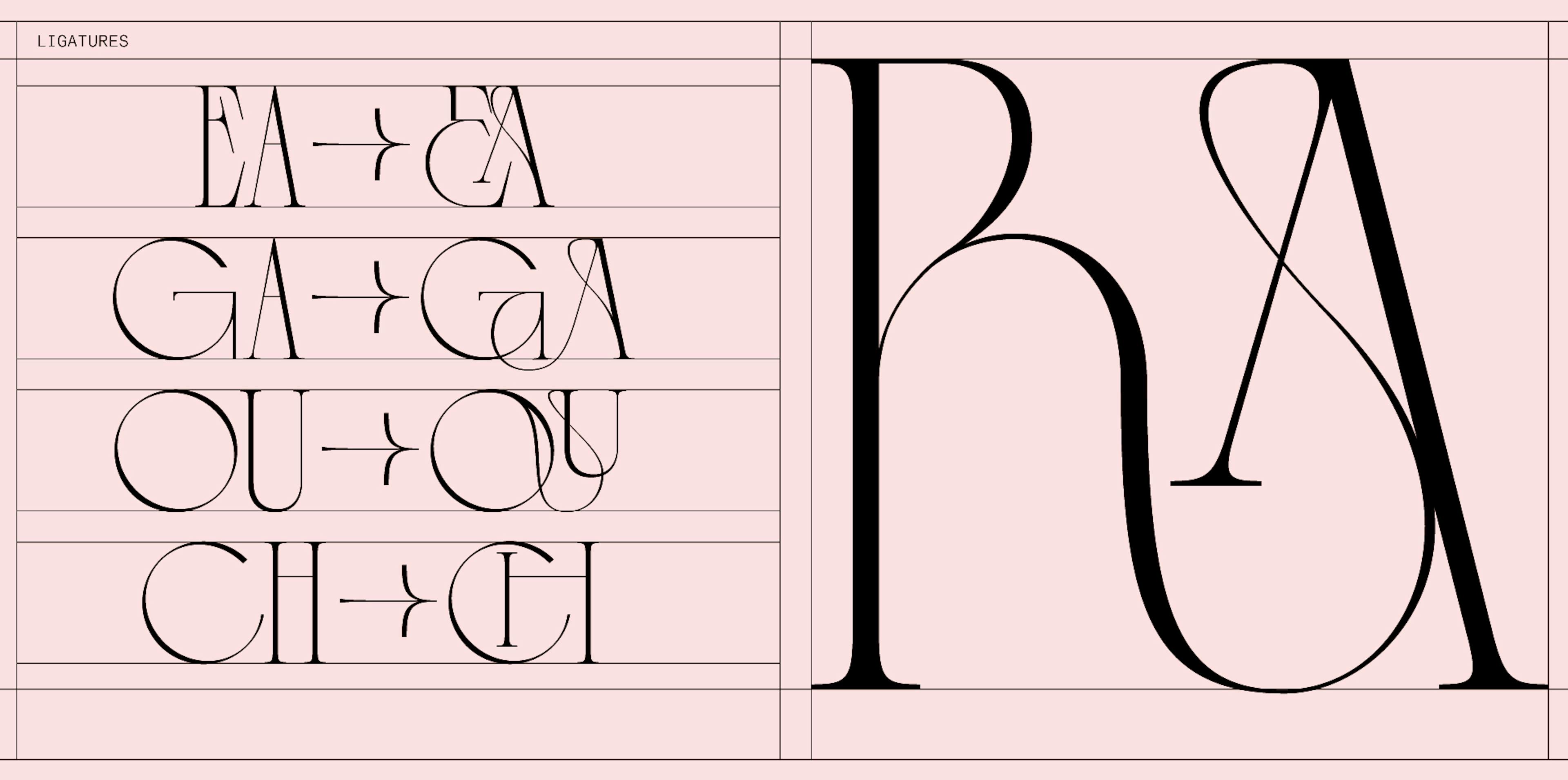 It's name references the changing curves of bread dough as it is kneaded, pushed and pulled into wonderful shapes. Its range of alternative letters and ligatures allow for inventive combinations, ideal for titles and logotypes.