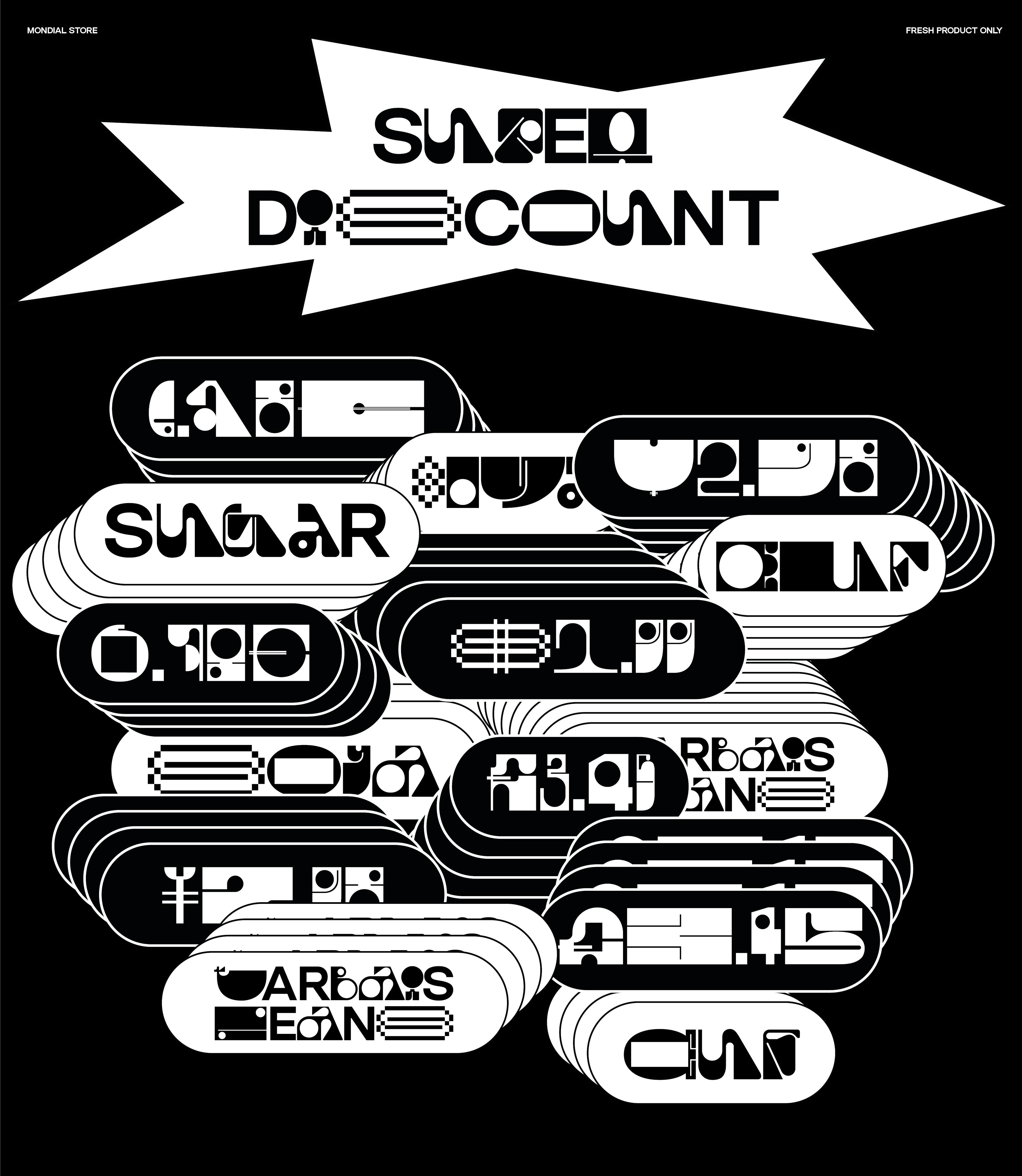 Britney comes with one legible sans-serif uppercase set and two eccentric-looking lowercase styles incorporating variable technology. In mixing all its different styles, Britney provides you with infinite possibilities to customise and create unique designs.